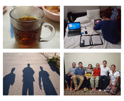 What does a typical day look like for an ICC team on the field? It usually starts early, checking the latest news, touching base with local contacts, and making any last minute arrangements. After meeting first with a local partner and discussing the needs of the persecuted church in that area, the team will go to meet directly with victims of persecution, recording their stories and assessing how best ICC will be able to assist. Countless hours of travel by plane, taxi, bus, boat, metro, and on foot, are standard, as is at least half a dozen cups of tea. The team usually finishes the day working late into the night, compiling reports and updating home base on the latest developments. Though challenging, the opportunity to work directly with the persecuted church is highly rewarding, and many of us will never forget the time we were able to spend with faithful believers from across the world. Pics: Top Left: Lots of cups of tea, Top Right: Working through the night, Bottom Left: Walking, walking, and more walking, Bottom Right: ICC team with Christian refugee family
