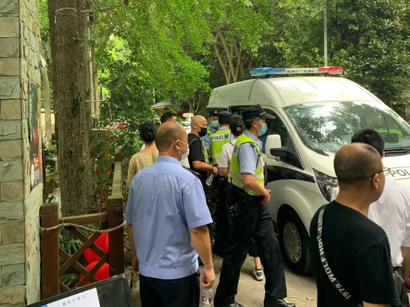 Xing Hongwei was reluctant to give his personal information and resisted the police as they forced him toward the registration. Due to his resistance, Hongwei was arrested, handcuffed, and led away along with his wife, Zhao Qing.